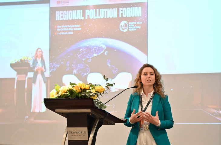 Bà Maria Paola Lia - Giám đốc điều hành Liên minh Toàn cầu về Sức khỏe và Ô nhiễm (GAHP) - nhấn mạnh ô nhiễm đang là một trong những nguyên nhân hàng đầu gây tử vong toàn cầu - Ảnh: BTC