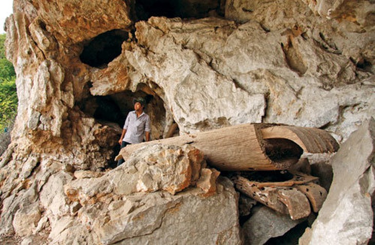 TTCT - “Ma Châu Mộc, độc Châu Mai”, từ xưa câu ấy đã lưu truyền để nói về một vùng đất được coi là rừng thiêng nước độc. Ngay cả Quốc sử quán triều Nguyễn cũng ghi lại điều đó khi viết về phủ Hưng Hóa với bao đại ngàn. Theo thời gian, đã có nhiều đổi thay nhưng vẫn còn đó những bí ẩn, chẳng hạn những chiếc quan tài cổ trên các đỉnh núi hiểm trở. Bản làng trong thung lũng Suối Bàng - Ảnh: Quốc Việt Sau mấy giờ rền rĩ xe máy từ thị trấn huyện Mộc Châu, Sơn La vượt đường núi chênh vênh vực sâu Phiên Luông, Hua Phăng, Nà Mường, tôi đến bến Trại, sông Đà. Người lái đò cứng cỏi nhưng chiếc thuyền tam bản quá mục nát, trở nên mong manh trước dòng nước cuốn theo nhiều gỗ rừng do mưa lớn. Cuối cùng thuyền cập bến Lồi, xã Suối Bàng, huyện Mộc Châu. Lại gần hai giờ đi bộ vật vã với những dốc cao đại ngàn. Bí ẩn mường trời Bản làng heo hút trong thung lũng dọc con suối đá được dân địa phương gọi là thung lũng Suối Bàng. Khó ai nghĩ đây là vùng đất cổ. Chính những hang động trên đỉnh núi và các quan tài bí ẩn treo hàng trăm năm ở đó như muốn nói rằng thung lũng từng có nhiều thế hệ cư dân sinh sống và gửi lại nắm xương tàn. Đại Nam nhất thống chí của Quốc sử quán triều Nguyễn chép rằng Châu Mộc bao gồm thung lũng Suối Bàng vào đời Trần thuộc đạo Đà Giang. Thời giặc Minh xâm lược nước ta, nó là đất huyện Tứ Mang và huyện Mông, đầu đời Lê được đặt tên là Mộc Châu. Bốn mặt đều là núi, địa thế hiểm trở. Núi Pha Lung ở động Mộc Thượng rất cao. Động Túc Mực có nguồn nước chảy ngược, hợp lưu với nhiều suối nguồn khác ở Việt Châu, qua khe Phong đổ vào sông Đà. Người dân ở đây nhanh nhẹn, săn bắn giỏi. Họ Xa nối đời làm phụ đạo. Tương truyền tổ tiên họ Xa là con thứ của quốc trưởng Ai Lao (tức Lào ngày nay), được cha ban đất để ăn lộc nhưng không nhận, xin tự đi tìm đất để sinh sống. Khi đi qua sông Nậu, người con lấy cục đá cầu khấn trời rằng: “Đi tìm khắp núi sông, hễ thấy chỗ nào đá có thể nói được sẽ ở chỗ ấy”. Khi đến đất Mộc Châu, người ấy dừng chân, lập nghiệp. Dân Suối Bàng hôm nay tin rằng thung lũng mình ở là vùng đất thiêng. Theo họ lý giải, núi rừng Tây Bắc bạt ngàn tại sao người xưa lại chọn các ngọn núi bao quanh thung lũng này để tập trung huyền táng? Phải chăng đây là đất thiêng để thân xác người chết có thể an nghỉ và linh hồn bay về mường trời? Buổi tối lạnh lẽo, già bản Mùi Văn Khương, 72 tuổi, nguyên chủ tịch xã Suối Bàng, ngồi uống rượu ngô với tiết dê tươi, ề à chuyện xưa bên bếp lửa. Tổ tiên già Khương truyền rằng nhiều đời người Thái đã săn bắn ở thung lũng có nhiều hang ma này. Họ tin đó chính là chủ nhân những chiếc quan tài treo bí ẩn và không ai được phép xâm phạm những hang động đó. Các thợ săn vô tình phạm nơi người xưa yên nghỉ, sau bị thú rừng tấn công hay bệnh tật chết đều được cho rằng do ma lang trên đỉnh núi hại. Già Khương tự hào từng là thợ săn giỏi, đôi chân đã vượt qua bao rừng núi Sơn La, nhưng vẫn chưa thấy nơi nào nhiều hổ như trong thung lũng Suối Bàng. Mùa đông năm 1974, súng kíp trong tay ông đã hạ gục hai con cọp định vồ trâu bản. Nhưng một bạn săn khác đã thúc thủ, nắm xương tàn bị cọp bỏ lại dưới nấm mồ đầu thung lũng. “Chính mắt tôi nhiều lần thấy cọp nằm trước những hang động có quan tài treo như để canh chừng. Tôi định bóp cò nhưng không dám. Rừng núi linh thiêng có những bí ẩn mà mình không hiểu nổi” - già Khương kể và cho rằng chúa sơn lâm chỉ ở núi rừng kỳ vĩ, linh thiêng. Quan tài cổ trên vách núi sông Đà - Ảnh: Quốc Việt Lên đỉnh núi ma Sáng hôm sau, biết tôi có ý định leo núi tìm hiểu hang động có quan tài cổ, chủ tịch xã Mùi Văn Mếu thận trọng săm soi mãi thẻ nhà báo của tôi. Ông nói: “Nhiều kẻ tham lam cổ vật đã sục sạo núi thiêng...”. Tuy nhiên, sau đó đích thân ông dẫn tôi đi và tìm thêm vài trai bản khỏe mạnh hỗ trợ. Trời xám xịt báo hiệu mưa dông. Đường mòn lên núi dài loằng ngoằng, khó đi với những đoạn dốc 70-80 độ. Tôi phải bám vào rễ cây, rìa đá để trèo lên. Mưa bắt đầu trút nước. Chúng tôi cố leo thêm đoạn nữa để xem “bụng ông trời” thế nào, nhưng cuối cùng phải lùi bước. Đêm thứ hai, tôi nghỉ ở nhà người dẫn đường Mùi Văn Khâm. Sáng hôm sau, vừa tỉnh giấc đã thấy anh nai nịt dao rừng thắt lưng. Sau trận mưa đêm, đường núi trơn trượt. Những gốc cây rừng bị người đi hái măng phạt xéo gốc nhọn như chông để mở đường trở thành hiểm họa nếu bị té ngã. Sau mấy giờ vật vã trèo đường núi, chúng tôi thấy cổng hang dần hiện ra dưới tán cây rừng. Khâm lẩm bẩm xin thần núi rừng cho vào hang. Dưới màn trời xám xịt, lạnh lẽo, những quan tài cổ có hình thù như chiếc thuyền gỗ nằm i