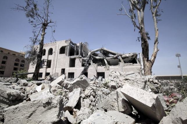 | Một tòa nhà tại Yemen bị hư hại nặng sau một cuộc không kích do lực lượng Saudi Arabia dẫn đầu - Ảnh: Reuters |
