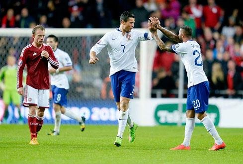 Ronaldo cùng Quaresma ăn mừng bàn thắng vào lưới Đan Mạch - Ảnh: Reuters |
