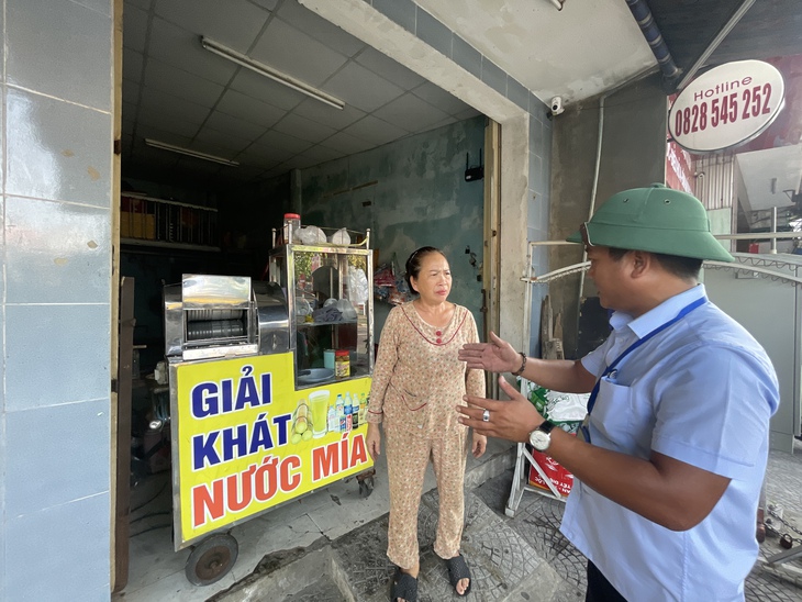 Cán bộ UBND phường Hòa Khánh, TP Đà Nẵng giải thích cho người dân về quy định mới liên quan đến trật tự đô thị - Ảnh: B.D.