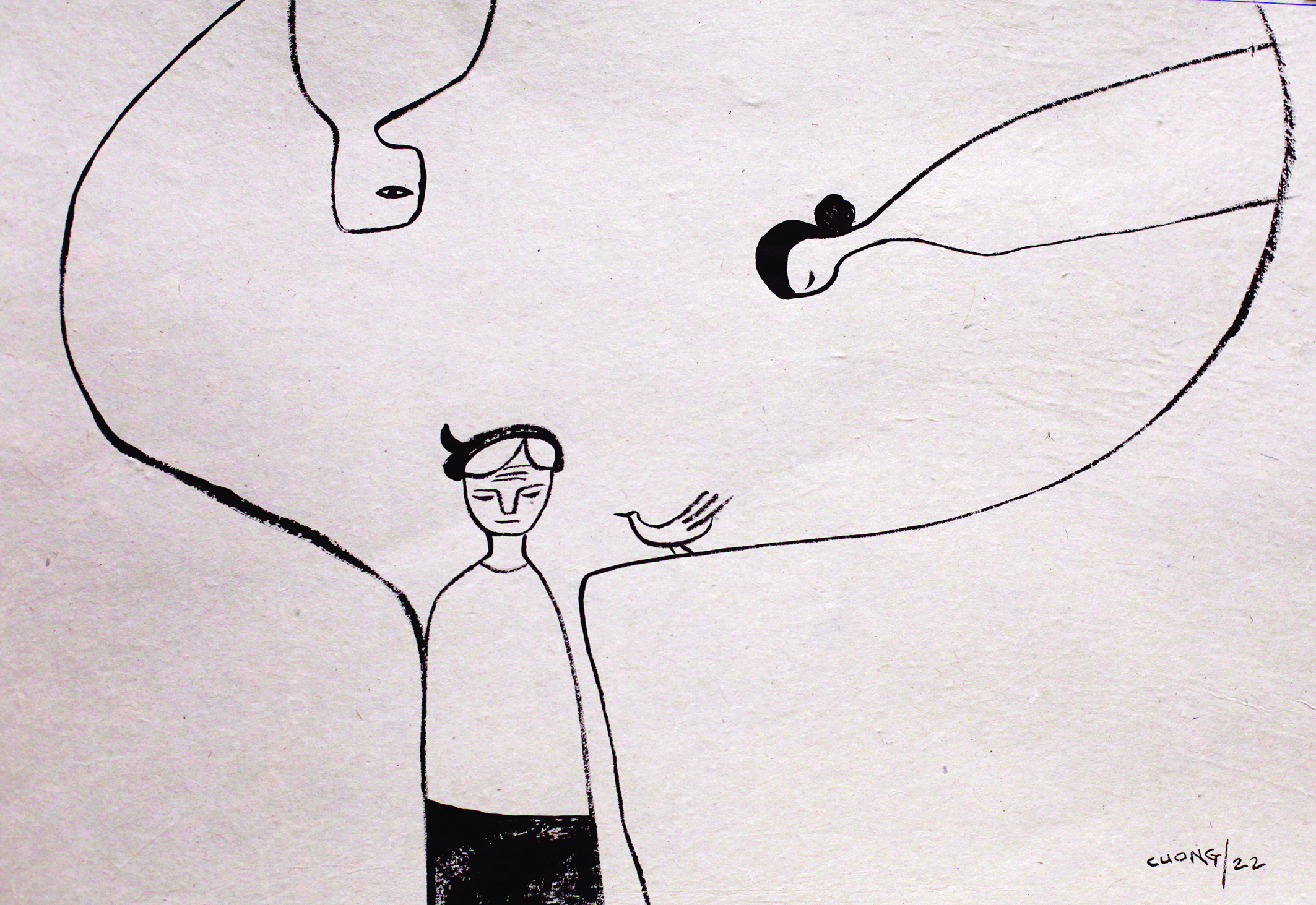 TTCT - (Trích từ tập Chuồng cọp trên cao - tác phẩm vào vòng chung khảo Văn học tuổi 20 lần 7) Tranh minh họa: Lê Thiết Cương Không biết bằng cách nào mà mẹ Chung lần ra được đến đầu hồi, chỗ gốc cây lựu già quanh năm buông từng chùm quả như những chiếc chuông nhỏ. Mẹ ngồi đó, lưng dựa tường, mắt nhìn lên vòm mít. Căn nhà ngói bốn gian mẹ xây từ giữa những năm tám mươi, từng mảng tường bở ra dính lên áo mẹ. Lúc Chung mắt nhắm mắt mở bước ra cửa, nhìn thấy dáng mẹ ngồi ở đó, anh đã giật mình. Sau trận đột quỵ, mẹ anh bị liệt nặng.Mắt mẹ vẫn nhìn lên vòm mít. Một con chim xanh đang đậu trên cành hót vang. Chung ngồi xuống bên mẹ: “Sao mẹ không gọi con?”. Bà cụ chỉ tay theo hướng chim xanh: “Con chim xanh gọi mẹ đấy!”. Tiếng con chim xanh vẫn véo von. Mẹ kể, những lần trở dạ sinh mấy đứa, lúc nào con chim xanh cũng bay về hót ở đầu nhà.Ngoài ngõ, cậu Pha đang đẩy xe bò ra đồng. Bà cụ Nha, mẹ cậu Pha, đã gần tám mươi vẫn ngồi trên xe với thằng cháu đích tôn. Mắt mẹ Chung nhìn như đuổi theo: “Mẹ muốn ra đồng như bà Nha quá!”. Chung nắm tay mẹ: “Mẹ có ngồi xe được không?”. Mẹ anh gật đầu.Con chim xanh đã bay sang tán lá xoài trước cổng. Chung vào chái bếp kéo xe bò cải tiến ra sân, quét, lau bụi bặm.Ngoài cổng, tiếng xe đạp lạch cạch rẽ vào. Cô Mí đèo con Xim về chơi. Vừa ấn túi thức ăn vào tủ lạnh, Mí vừa nói xối xả: “Từ nay, em cho cháu về ở hẳn với mẹ, mặc kệ tay Bình ở nhà muốn múa máy thế nào thì tùy. Cho chừa cái thói cậy nhà!”.Chung liếc ra chỗ mẹ, thấy mẹ vẫn đang vuốt mái tóc mỏng như tơ của con Xim, thì suỵt ra hiệu cho Mí: “Be bé cái mồm thôi, mẹ đang vui. Thế vợ chồng lại cãi nhau à?”.“Cãi nhau còn nhỏ. Tay Bình cùn là giở cái giọng cậy nhà, đuổi em cút về nhà mà chăm mẹ đi. Em điên lắm. Lần này, em đi luôn, cho biết mặt. Có sang van vỉ nỉ non em cũng không thèm về như lần trước nữa!”.“Vợ chồng phường chèo, ti toe cho sớm vào mà chán sớm”.Mí xắn cái quần ống loe lên đầu gối, bĩu môi dài thượt: “Hồi ấy, trẻ con nứt mắt đã bập vào hắn, em biết gì. Giờ, đi làm thì chớ, về đến nhà là phải hầu hạ dạ vâng mẹ hắn. Sớm nay em còn mải dỗ cho con Xim ăn chưa kịp vào thay bỉm đổ bô cho bà ấy, hắn vào buồng thấy bốc mùi, quay ra chửi em, em tức, bỏ về đấy”.“Cô cũng trẻ con vừa thôi. Các cụ già kiệt sức sắp đi rồi, chăm mẹ chồng cũng phải như chăm mẹ mình chứ. Thôi thì cứ ở nhà vài hôm cho nguôi ngoai đã, rồi tính”.“Em chả thèm tính gì nữa đâu. Anh có là đàn bà đâu mà dám nói chăm mẹ chồng cũng như mẹ mình được”.“Tôi cũng chăm mẹ đấy thôi”.“Nhưng anh khác”.“Thôi, không nói chuyện đó lúc này. Mẹ thích ngồi xe bò ra đồng xem gặt đấy”.Mí trợn mắt: “Đưa mẹ ra đồng chơi? Mẹ đang ốm thế?”.“Nay mẹ khỏe nhiều. Hồi mình còn bé, mẹ chở anh em mình ra đồng, giờ mình chở mẹ một chuyến cho mẹ vui”.“Anh Ngơi biết thì chết. Anh ấy đã hứa bao giờ mẹ khỏe lên sẽ cho chuyến xe về đón mẹ lên thành phố, ra biển chơi hẳn hoi. Chứ ra đồng thì có gì”.Tiếng con chim xanh vẫn hót choéc chuýt chít vang đầu cổng. “Mẹ thích ra đồng làng mình cơ”.Rơm nếp còn mấy bó trên gác bếp được mang chèn quanh thành xe, chiếc chăn bông đơn từ hồi Chung còn sinh viên được trải trong thùng xe. Chung bế mẹ lên xe, Mí ngồi phía sau ôm lấy mẹ, con bé Xim ngồi sát chân bà.“Thế liệu có nặng đầu không?”. Mí hỏi.Chung cầm càng xe, nhấc lên, kéo thử, xe lăn bánh lộc cộc. “Thêm hai người nữa anh vẫn kéo được nhá!”.Xe qua giếng làng. Cái giếng đất ngày xưa thả bèo ong, nước trong leo lẻo, dân làng sáng chiều nườm nượp ra gánh nước về ăn. Giếng giờ đã được kè đá, thả sen. Mẹ chỉ xuống bậc cầu ao, giọng khập khiễng theo vòng bánh xe. Vụ mùa ấy, ban ngày mẹ đi gặt, tối về đập lúa, đêm mới ra giếng gánh được mấy thùng nước về đổ vào coóng dùng dần. Đêm đó không trăng, bước xuống giếng chật chưỡng, mẹ ngã, mặt xây xát. Ông nội nhìn thấy thì mát mẻ, lần mò đêm hôm ra đó để đứa nào nó cào vào mặt. Đợi ông vào nhà, bà nội lựa lời, ông ấy vốn khó tính khó nết. Từ lúc bố thằng Ngơi mất, ông ấy buồn, càng đâm ra xét nét tợn.Trên vai Chung, thừng bò chùng lại. Bố mất khi Mí mới được ba tháng, Chung vừa đi học lớp một còn anh Ngơi thì lên lớp bẩy. Mí là em út nên hay được chiều. Chung còn nhớ một lần, mẹ mua cho Mí chiếc áo mới, Mí đang thử, Chung bơm mực vẩy vào áo em. Mí lăn ra sân, giẫy sần sật như đỉa phải vôi. Chung sợ mẹ về đánh đòn, phải dỗ Mí nín bằng một cuốc xe bò kéo lên đồng Bùn chơi rồi lại kéo về.Cây gạo đầu làng đang kỳ bánh tẻ. Trên cành, bầy chim chuyền lích rích. Bàn chân Chung chầm chậm. Ngày xưa, mẹ Chung còn trẻ, đẹp như bông hoa gạo tháng ba. Ông nội không biết đã để mắt tới cô Hiên