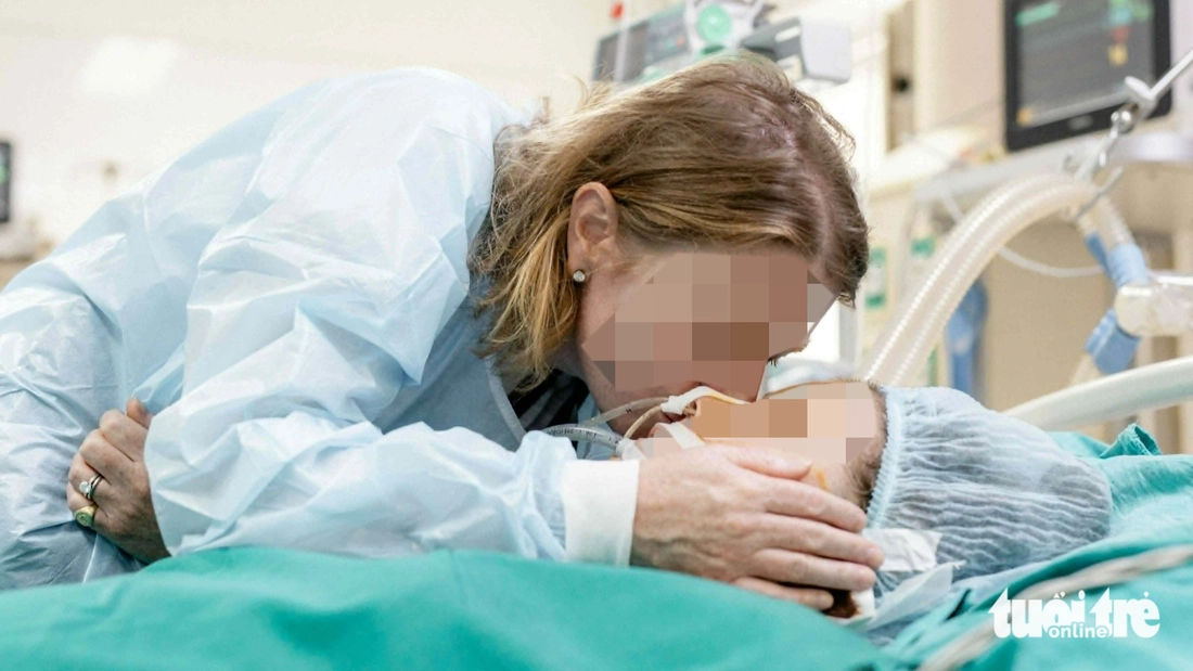Người mẹ tiễn biệt con gái trong phòng hồi sức, trước khi gia đình quyết định hiến tạng, mang lại cơ hội sống cho các bệnh nhân khác - Ảnh: DANH KHANG